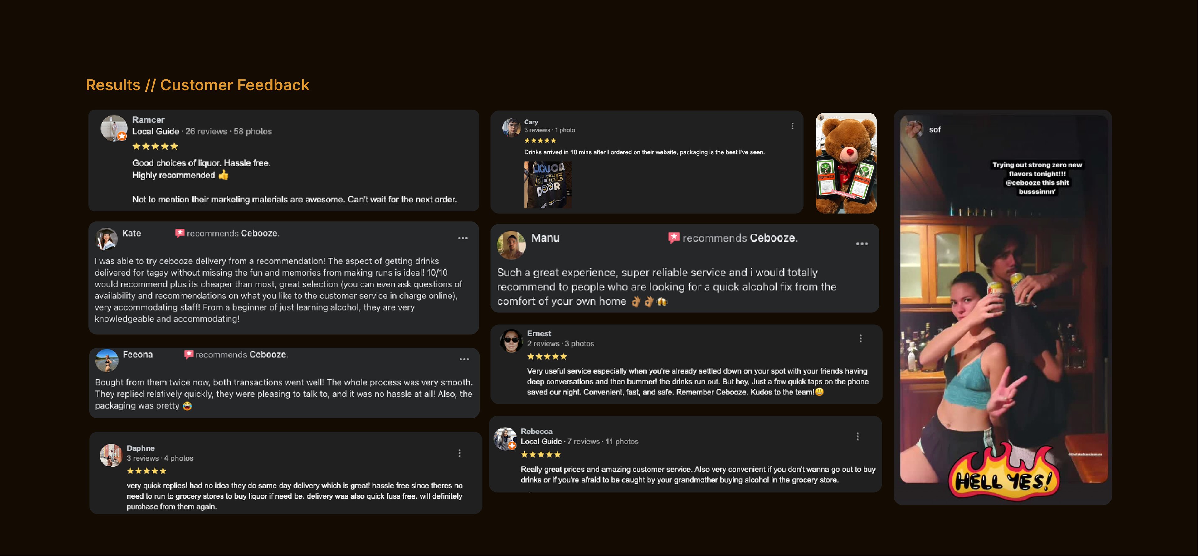 Community-Driven: Emphasizing connection and engagement positions Cebooze as more than a delivery service.